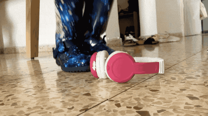 אוזניות חוטיות Jlab Jbuddies מתאימות לילדים קטנים בגילאי 2-4, בנויות מפלסטיק. הילדים העידו כי הן לא נוחות.